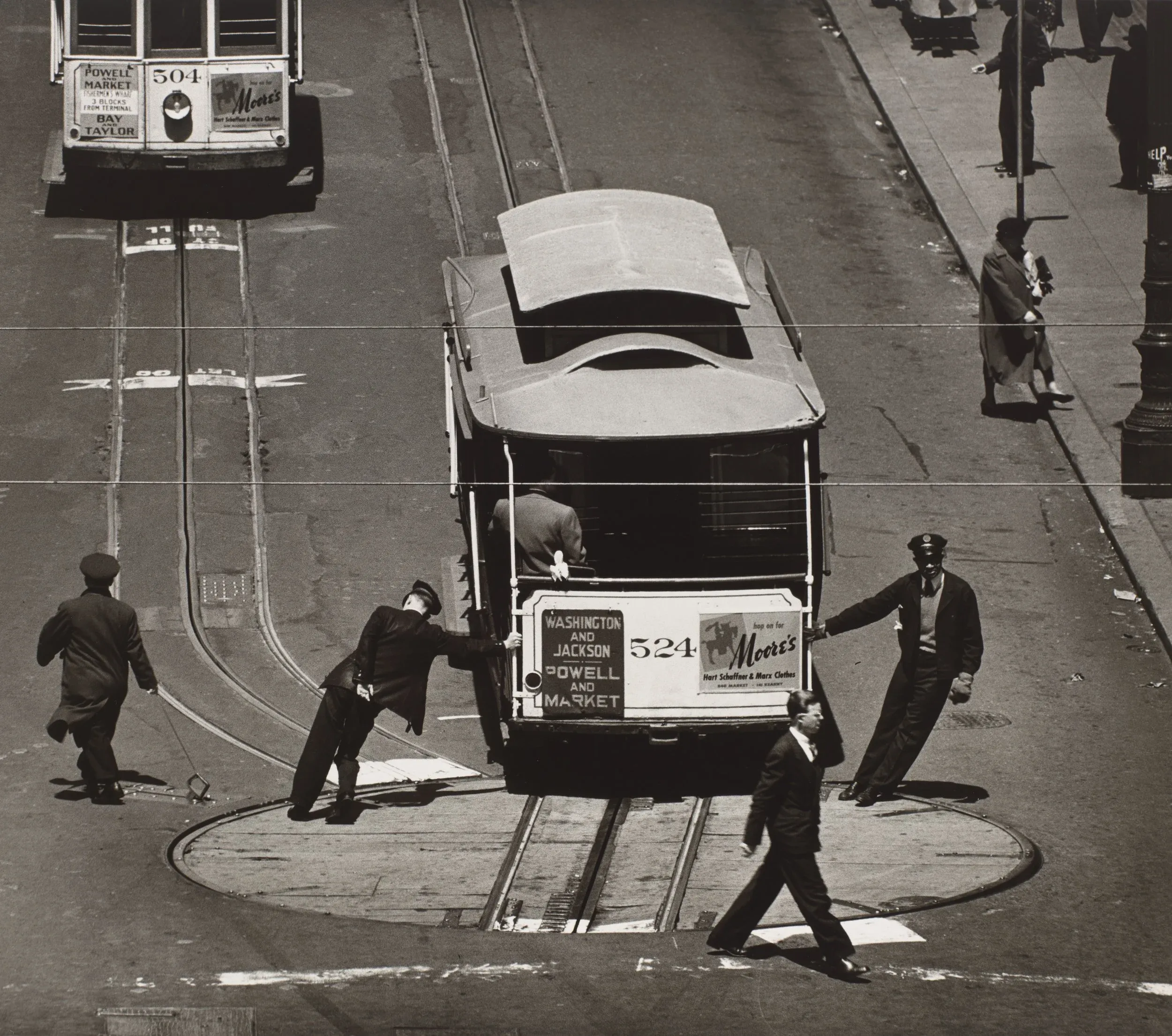 Max Yavno (United States, 1911–1985), Cable Car, San Francisco, 1947, gelatin silver print, 15 1/2 x 17 1/2 inches. Portland Museum of Art, Maine, Promised Gift from the Judy Glickman Lauder Collection, 7.1998.73. Image courtesy Luc Demers. © Center for Creative Photography, The University of Arizona