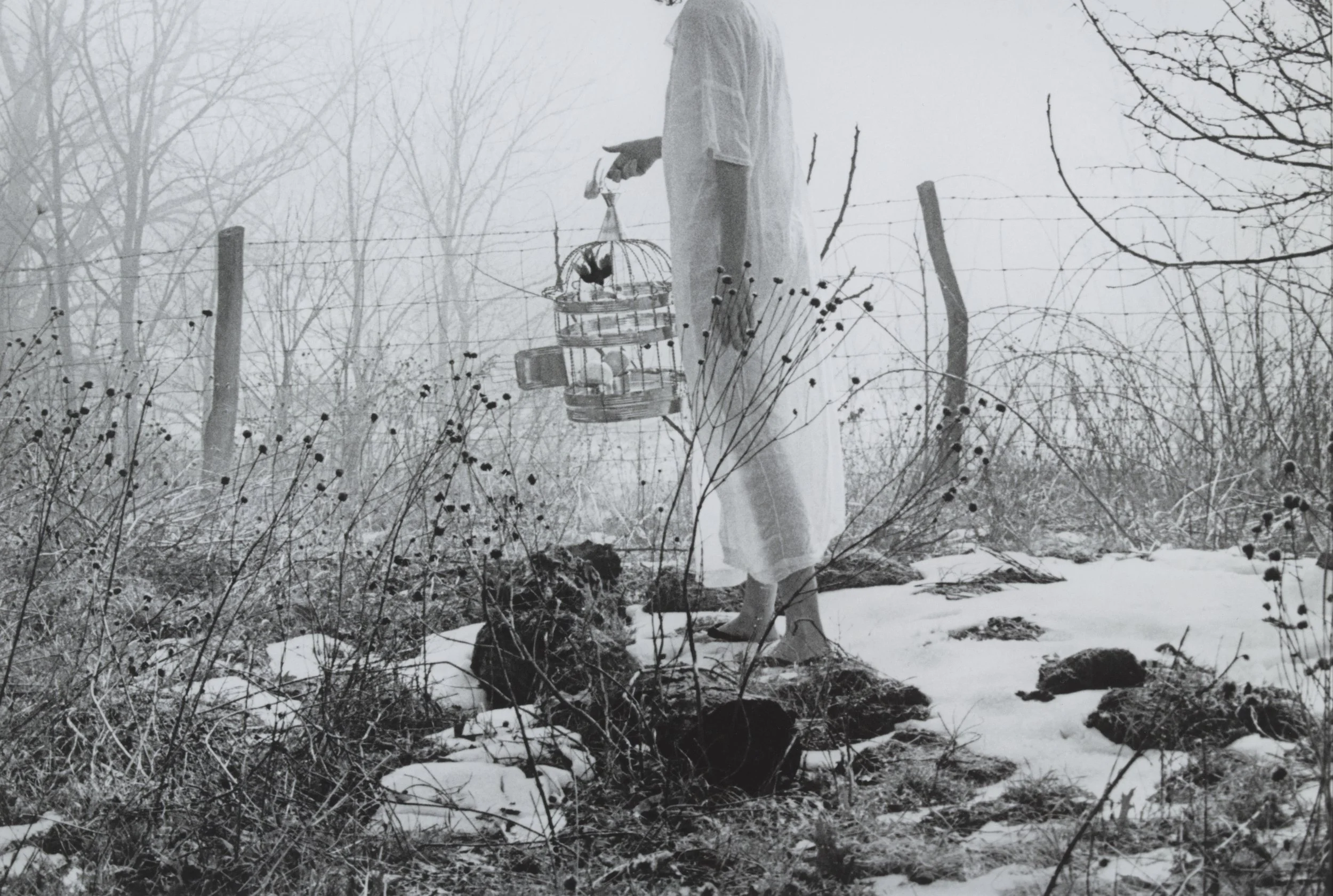 Joyce Tenneson (United States, born 1945), Self-Portrait with Bird Cage, 1975, inkjet print, printed later, 11 x 16 1/8 inches. Portland Museum of Art, Maine, Promised Gift from the Judy Glickman Lauder Collection, 10.2010.12. Image courtesy Luc Demers. © Joyce Tenneson