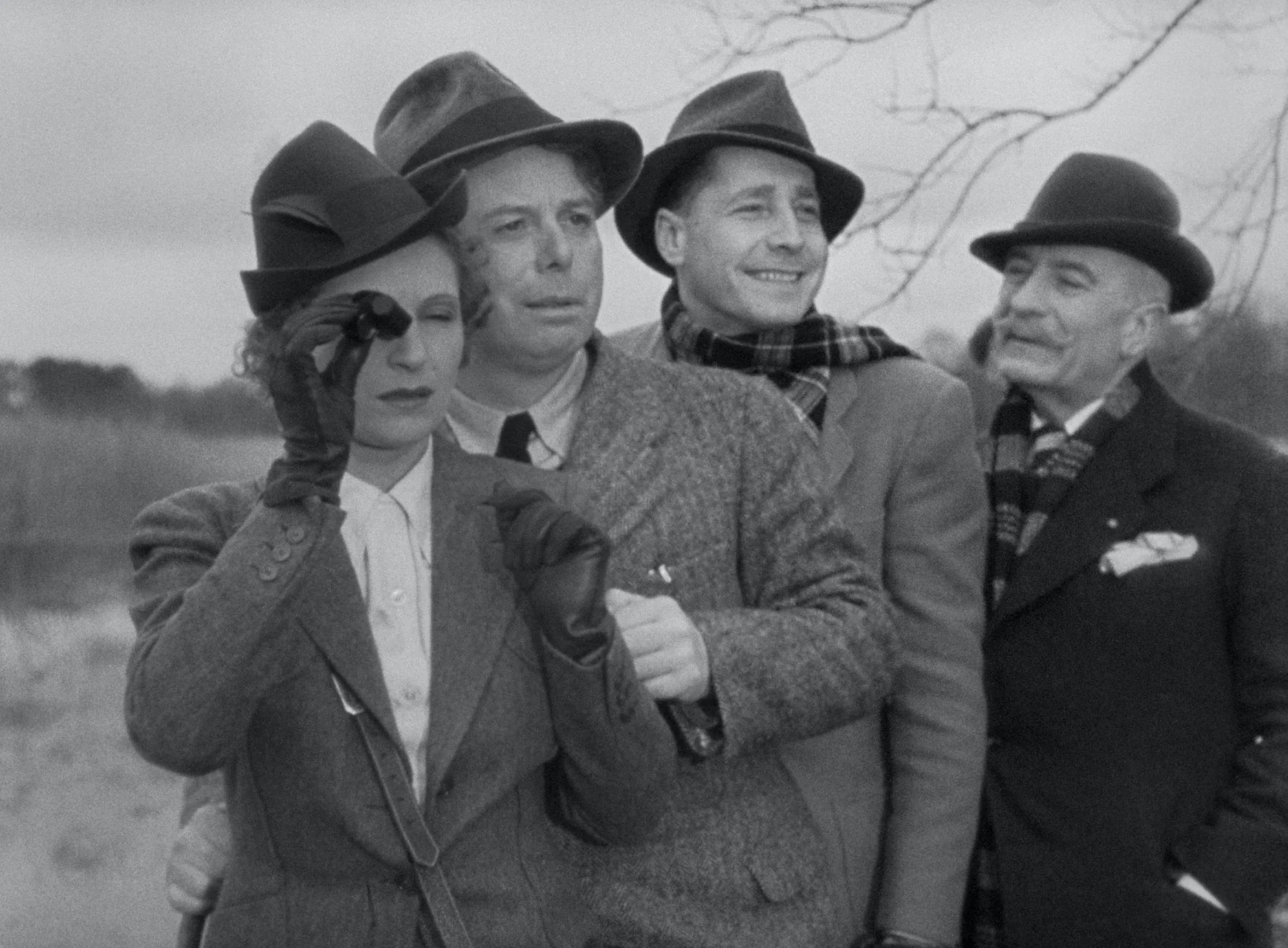 Recently restored to 4k digital, Renoir’s masterpiece has possibly never looked better, while adhering to the director’s original vision as much as possible. The film’s visual details and multiple planes of action are crisp and clear: the perspiration on André’s brow when he lands his record-setting flight, the circles under Christine’s eyes as she hears him on the radio, the paisley pattern on the scarf with which Robert nervously blots his face, the leopard spots on Geneviève’s fur chapeau. But the lens also turns toward the kitchen staff folding tablecloths in the back of the shot, to the servants beating trees with sticks to rouse the rabbits the rich will hunt, and to the polka-dotted tie of Marceau (Julien Carette), an indigent poacher whose animal traps are as quick as his hands on Lisette.
