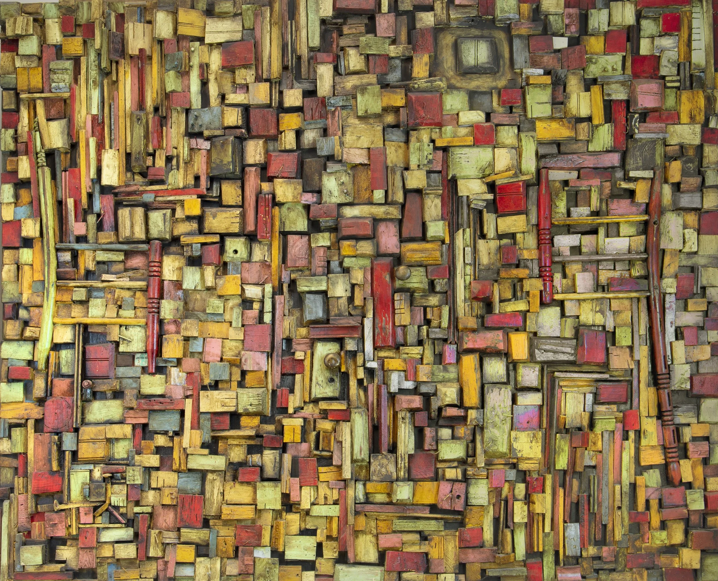 The difference between fine and folk art is not always obvious of course. You can look at a wooden tiger by Felipe Benito Archuleta and think it might have escaped from the carved menagerie of Bernard Langlais. And the wooden wall construction by Jean-Marcel St. Jacques might very well be a Louise Nevelson sculpture were it painted black.
