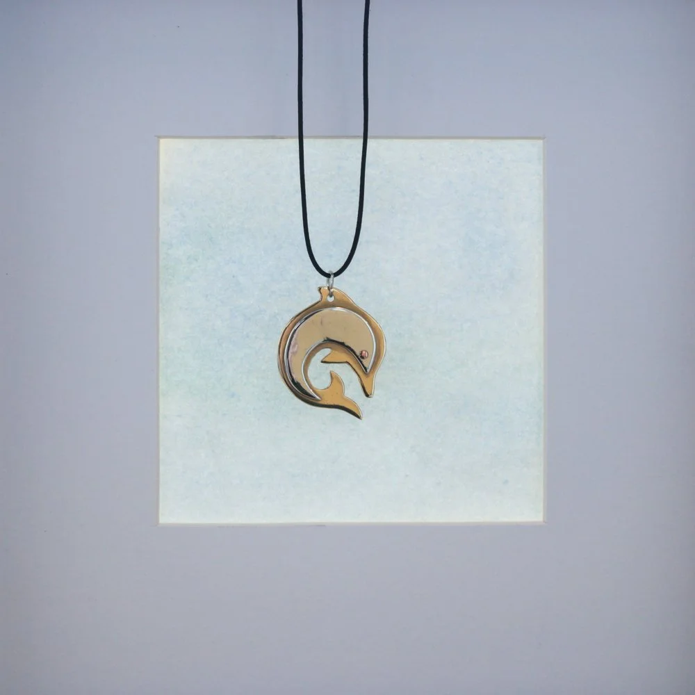 “This piece depicting a dolphin was constructed by riveting two pieces of nickel on either side of a piece of brass in five places. I sought to capture the fluid grace of this magnificent creature through metalwork. Dolphins are highly intelligent animals known for their playful nature, a reminder to approach life with joy and humor.”