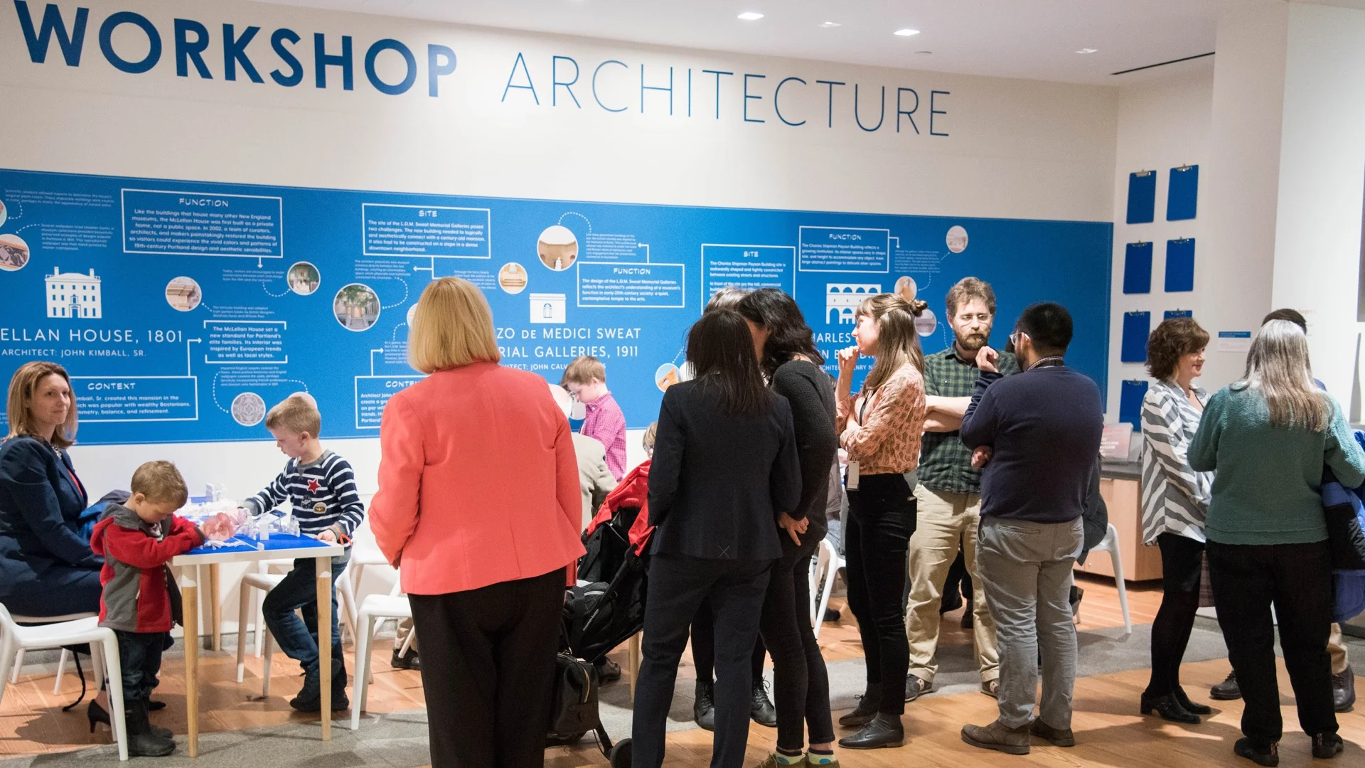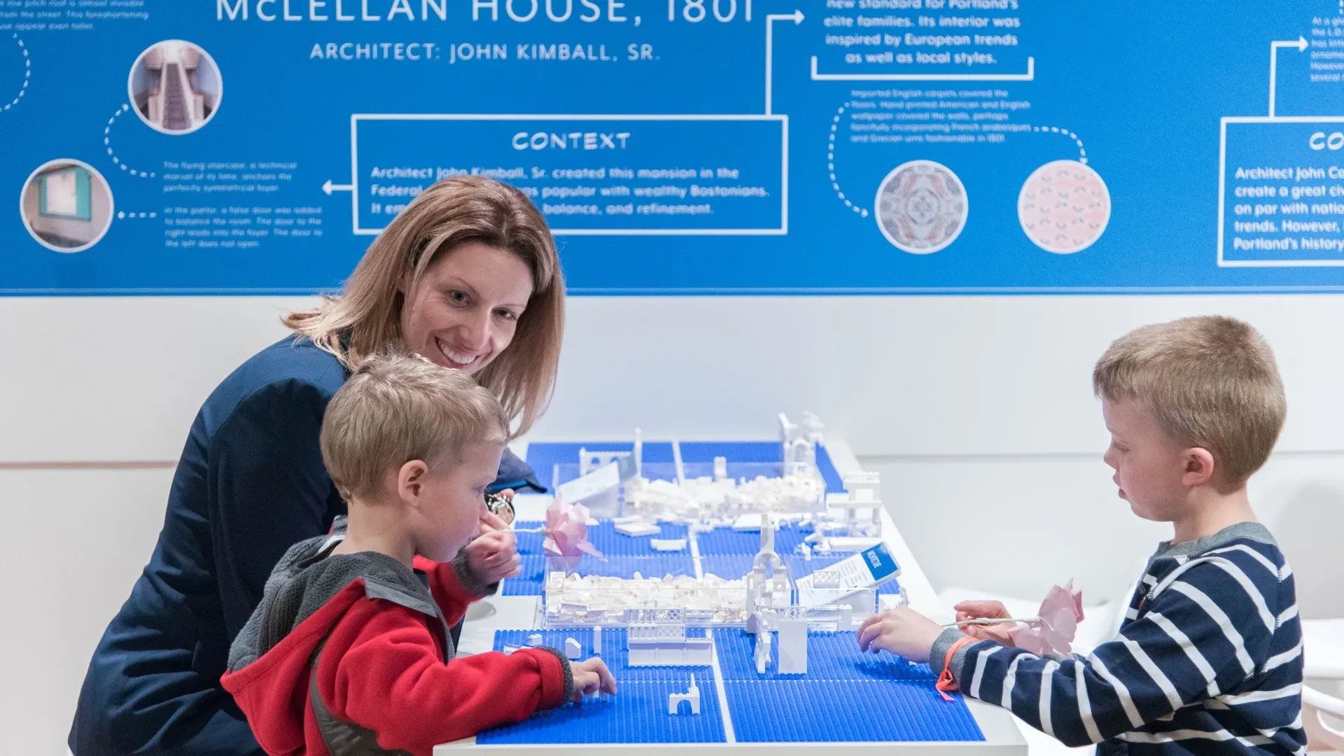 Prompt cards containing specific architectural challenges—the size and shape of the site, the surrounding vernacular, and the intended use of the space—encouraged participants to think more boradly about the range of decisions architects make when creating a new space. A display shared how the architects of the PMA’s 3 buildings handled these challenges, tying the activity to the museum and inviting visitors to explore these ideas in the galleries.