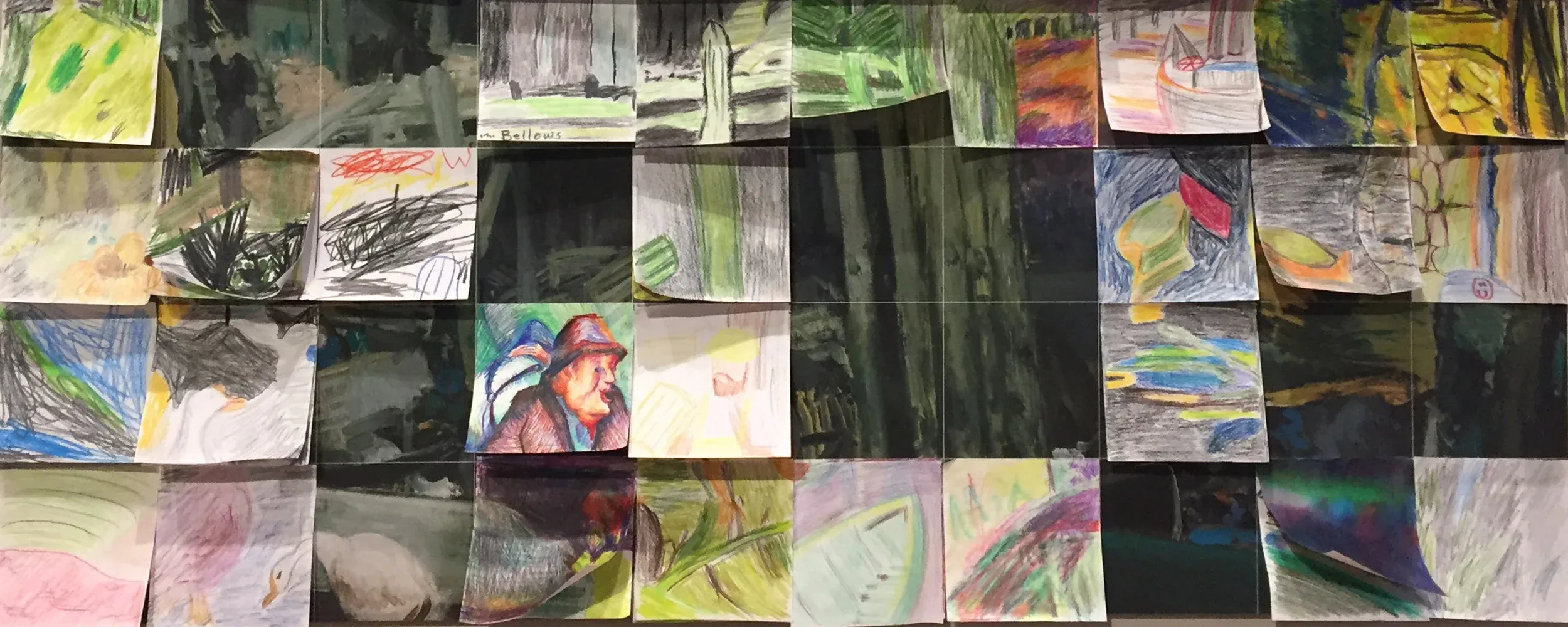 Hundreds of visitors selected a small detail from one of the painting which intrigued them and copied it onto a paper tile. These individual copies were pasted together on the back wall, creating an evolving collaborative version of the work of art. As the project continued, participants recreated each section over and over, leaving stacks of paper tiles layered up to 24 pages deep. No copy was a perfect replica—each tile was an artifact of someone’s looking, thinking, and exploring. Each one introduced us to some facet of the work that we might never have seen if we were looking alone.