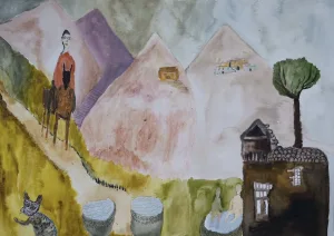The watercolors on view here by Gregory Jamie are part of an ongoing series of paintings that play with folklore as a non-nostalgic, immediate, and dreamlike form.