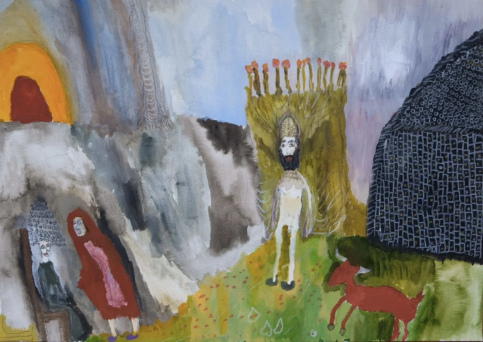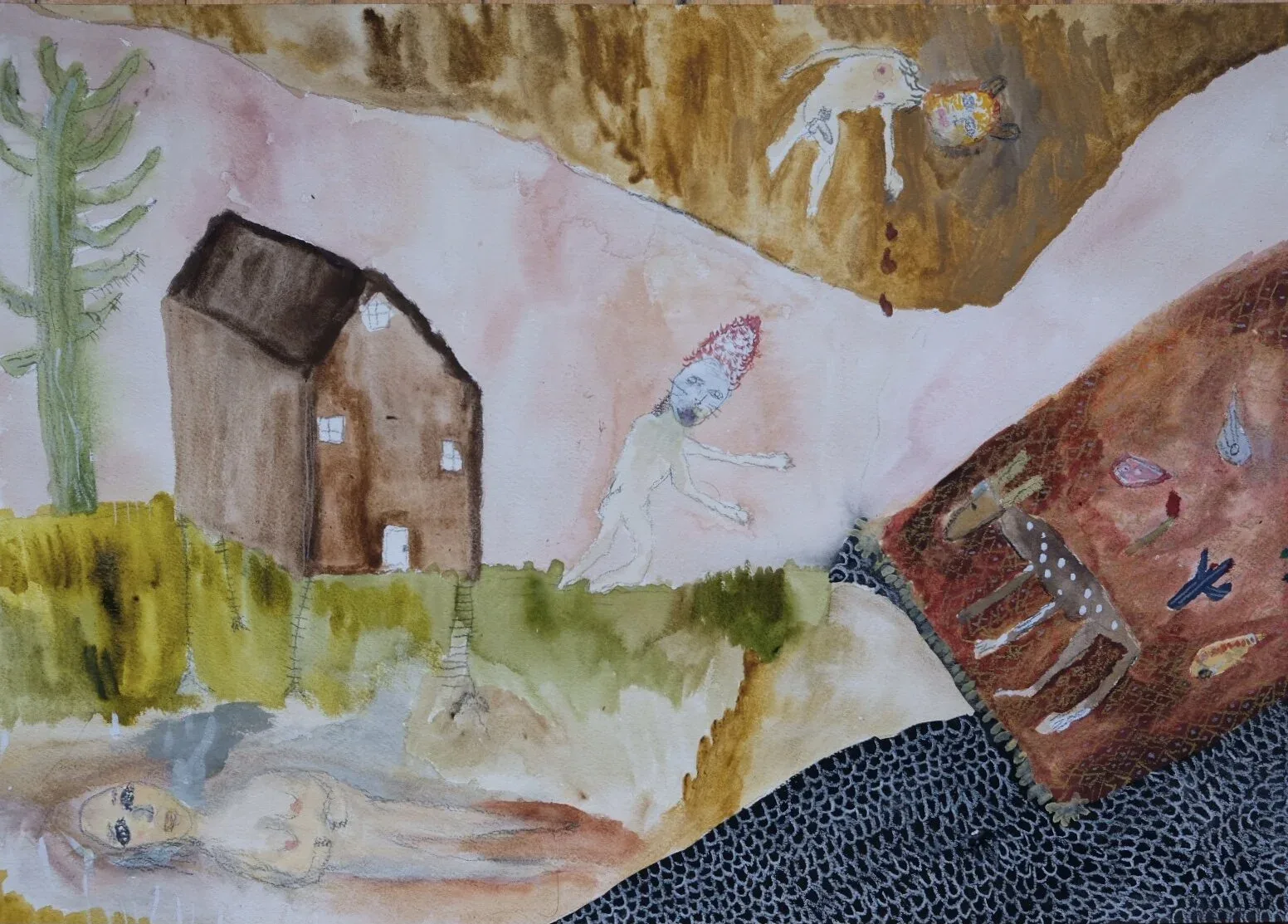 The watercolors on view here by Gregory Jamie are part of an ongoing series of paintings that play with folklore as a non-nostalgic, immediate, and dreamlike form.