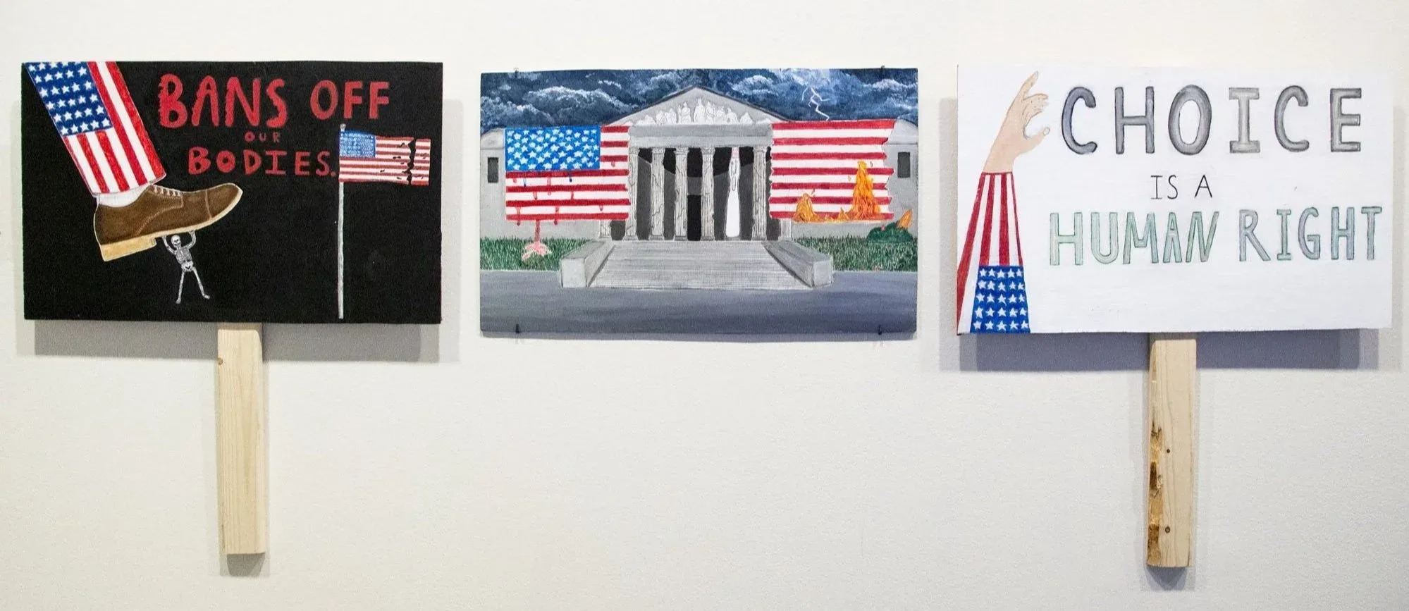 Since the beginning, America has found a way to step on its citizens. Recent events have depicted a backward America in which rights are being taken away from those who are able to have children. My work represents the pressure that America puts on its citizens to conform to misogynistic ideals, created by men in power, who tell people what they can and can’t do with their bodies and create double standards that revoke human rights.