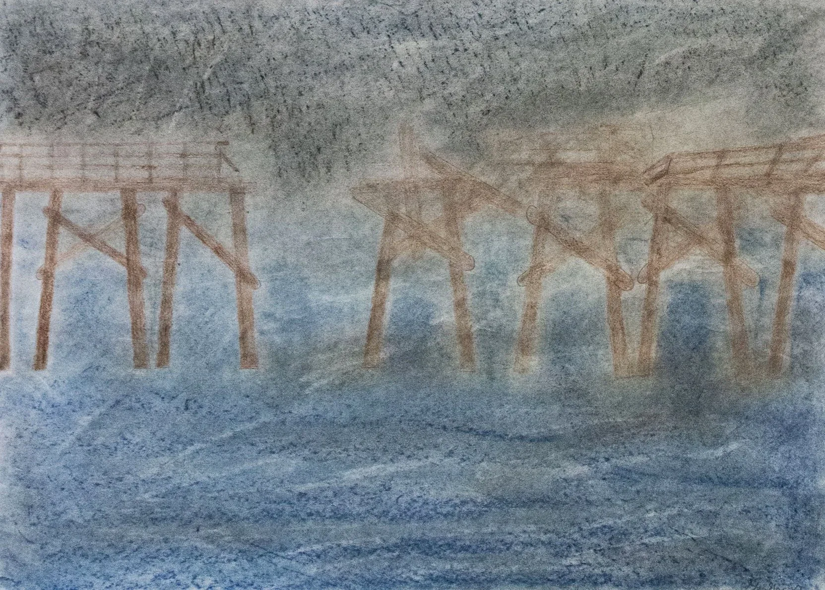The Bogue Inlet Fishing Pier of Emerald Isle Beach, NC is an important place for me. Ever since I was a kid I would visit my Grandparents house at this beach often and see this pier. In 2018, Hurricane Florence hit the east coast very hard and destroyed the pier.  My artwork showcases the damages and the transition of the Environment before and after the hurricane.