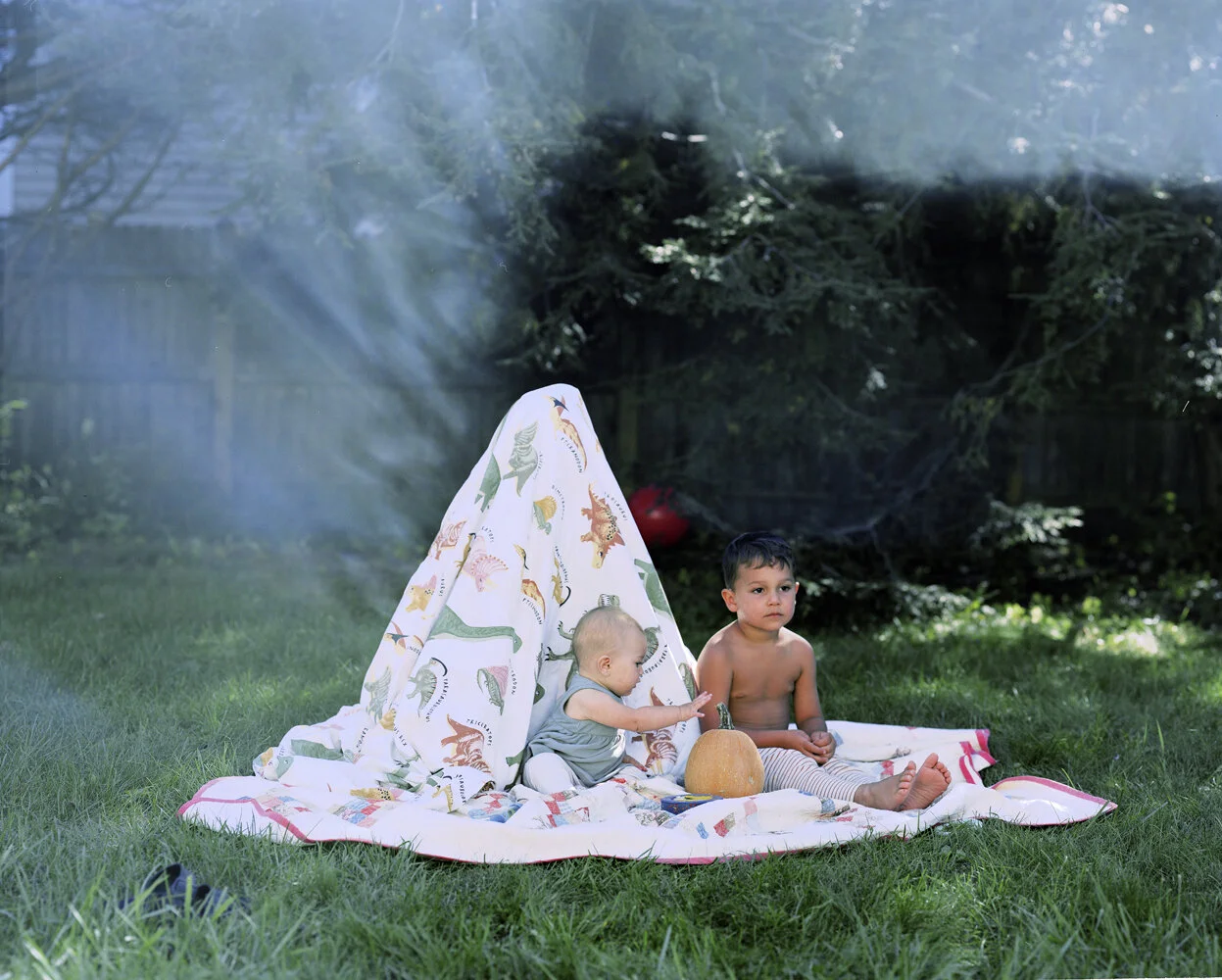 “I am a mother, slowly slipping away from who I really am. All of this has only been exacerbated by the pandemic, as I am now spending more time than ever devoting myself to my children. To express this feeling of invisibility, I took photos exploring Hidden Mother Photography, a style of photographs common in the Victorian era, in which young children were photographed with their mothers present but hidden within the photograph. Hidden under a sheet or blanket, I become a structure, present only for stability and support, entirely devoted to the needs of my others.”